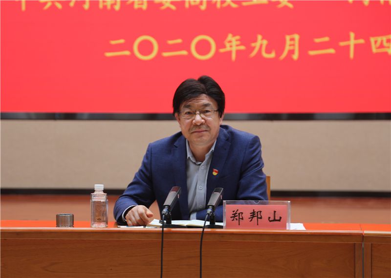 9月24日,全省大中小学思想政治理论课建设工作座谈会在大别山干部学院召开。省教育厅党组书记、厅长郑邦山同志主持座谈会,并与我省部分高校领导、马克思主义学院院长,各省辖市、济源示范区、各省直管县(市)教育局相关负责同志进行了深入交流。
